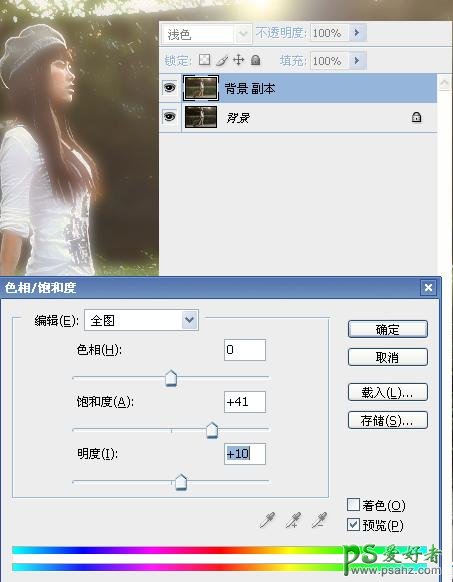 3、按Ctrl + U 调整色相/饱和度,参数设置如下图。