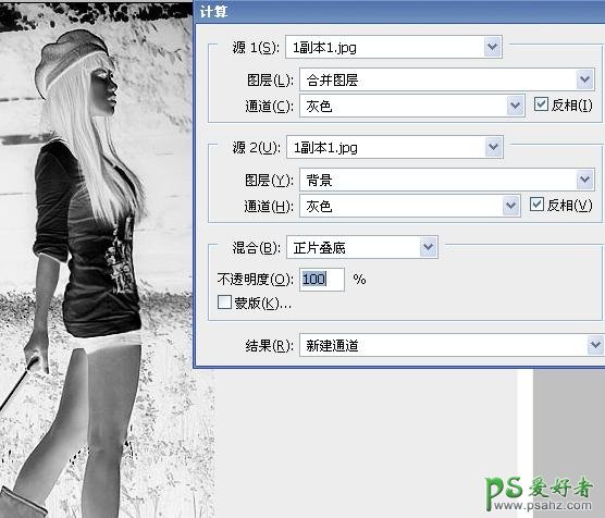 6、回到背景图层执行:图像 > 计算,参数设置如下图,确定后即可在