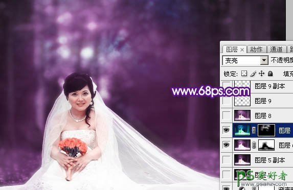 11、感觉背景的颜色太单一,需要增加一些补色。新建一个图层盖印图层,按Ctrl + B 调色色彩平衡调成图17所示的颜色,然后把图层混合模式改为“变亮”,按住Alt 键添加图层蒙版,用白色画笔把部分背景擦出来,效果如图18。
