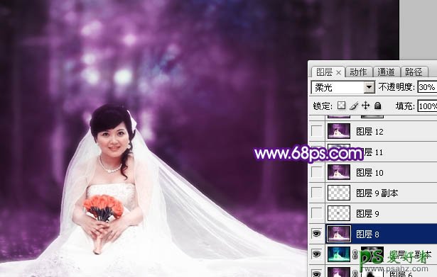 12、新建一个图层,盖印图层。执行:滤镜 > 模糊 > 高斯模糊,数值为5,确定后把图层混合模式改为“柔光”,不透明度改为:30%,效果如下图。