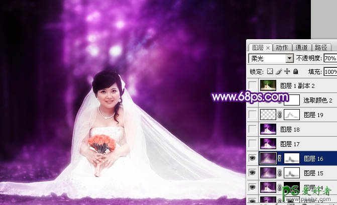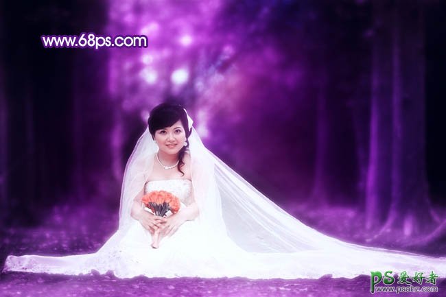 PS调色教程:给可爱小美女婚纱照调出紫色梦幻效果