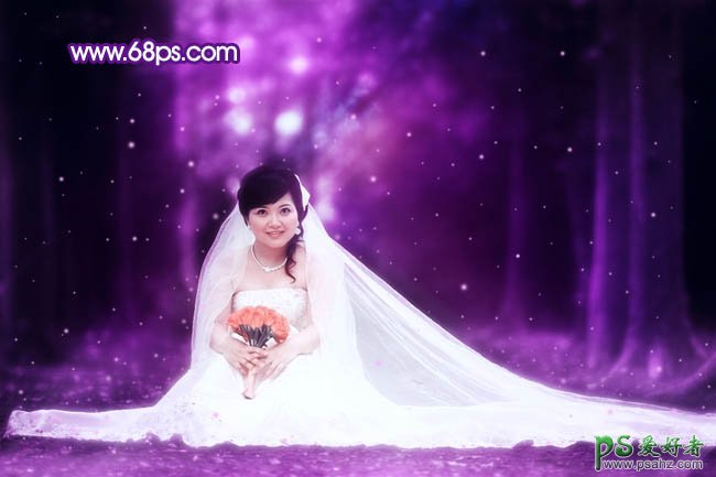 PS调色教程:给可爱小美女婚纱照调出紫色梦幻效果