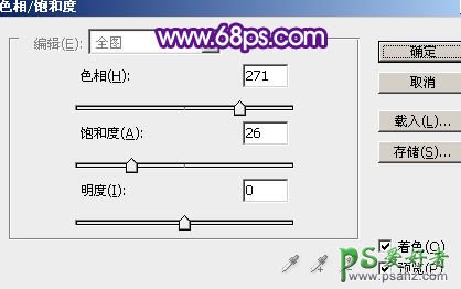 1、打开原图素材,创建色相/饱和度调整图层,参数设置如图1,记得勾选右下方“着色”选项,效果如图2。