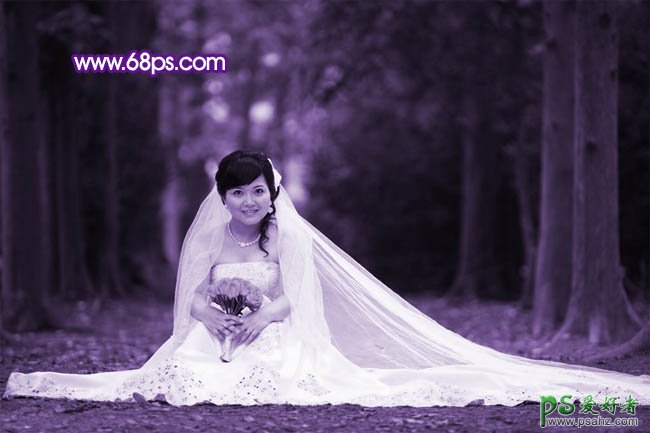 PS调色教程:给可爱小美女婚纱照调出紫色梦幻效果