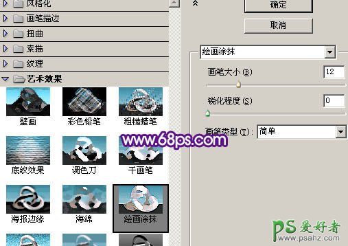 8、新建一个图层,盖印图层。执行:滤镜 > 艺术效果 > 绘画涂抹,参数设置如图13,效果如图14。