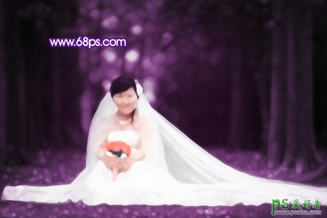 PS调色教程:给可爱小美女婚纱照调出紫色梦幻效果