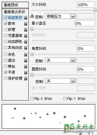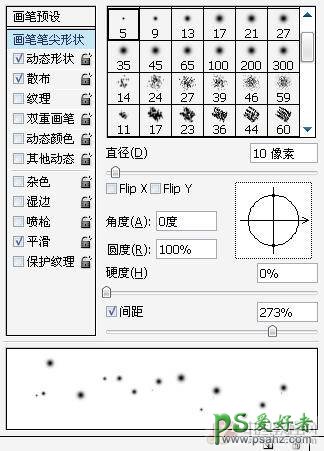 10、再设置一种星星笔刷(如图),也是在人物周围拖动(如图)。(这时的画笔不透明度设为100%)