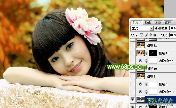 9、新建一个图层,盖印图层。按Ctrl + Shift + U 去色。执行:滤镜 > 模糊 > 高斯模糊,数值为5,确定后把图层混合模式改为“柔光”,不透明度改为:60%,效果如下图。