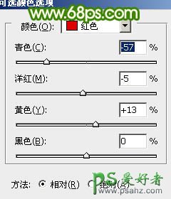 11、创建可选颜色调整图层,对红色进行调整,加强全图的红色,参数设置如图23,效果如图24。