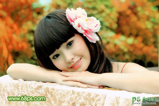 PS调色教程:给漂亮可爱的美女照调出粉橙色效果