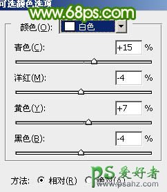 1、打开原图素材,创建可选颜色调整图层,对红,绿,白,中性色进行调整,参数设置如图1 - 4,效果如图5。