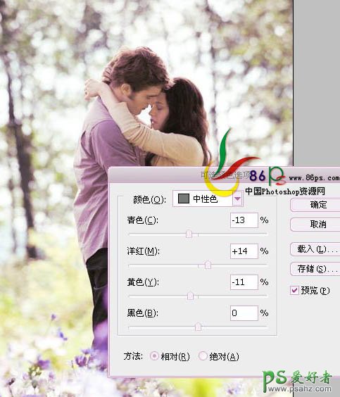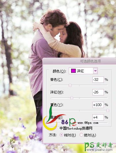 PS照片后期调色教程实例,PS快速给外景幸福情侣写真照调出暖色效果,本教程介绍情侣图片润色方法。作者对色调把握非常好,用一些较为浪漫的色调装饰画面,可以更好的突出情侣的爱意。调色过程也比较简单,用可选颜色或其他工具把背景部分的主色调成紫色即