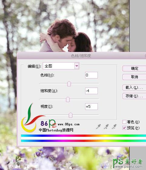 3、执行图层 > 新建调整图层 > 色相/饱和度调整层,降低全图饱和度,提高明度。