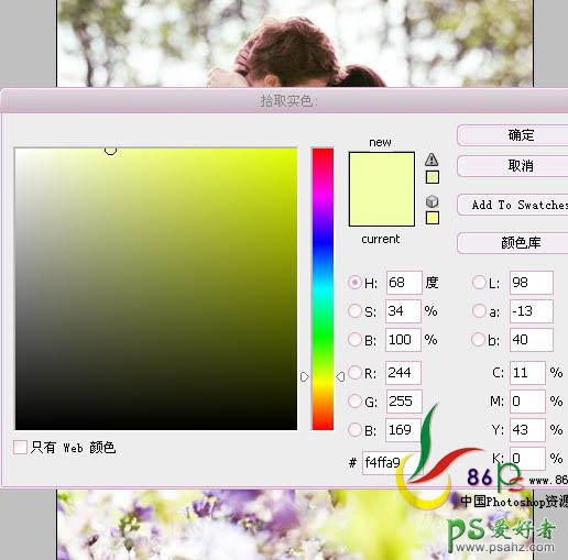 5、执行图层 > 新建图层 > 纯色层,颜色#F4FFA9,图层模式设为:柔光。