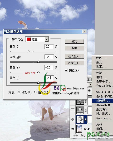 2、建可选颜色调整层,调整红色(肤色),参数及效果如下图: