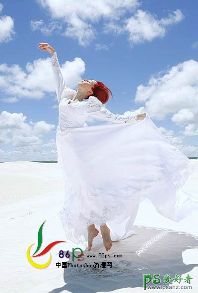 PS调色教程:给海景美女写真照调出洁净的效果