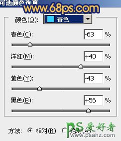 2、创建可选颜色调整图层,对青色进行调整,参数设置如图2,这一步是调整背景部分青色调,效果如图3。
