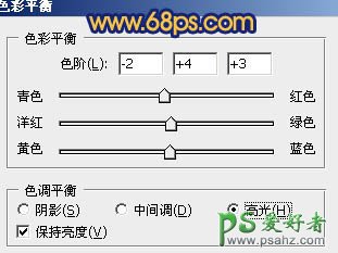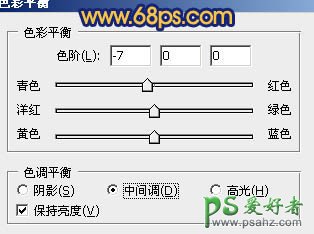 6、创建色彩平衡调整图层,对中间调及高光进行调整,参数设置如图11,12,确定后用黑色画笔把人物衣服部分擦出来,效果如图13。