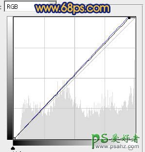 7、创建曲线调整图层,对RGB及蓝色进行调整,参数设置如图14,确定后只保留人物脸部及肤色部分,其它部分用黑色画笔擦掉,效果如图15。