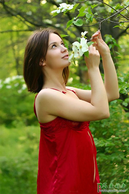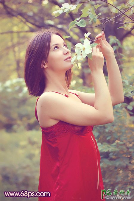 PS美女照片调色教程实例,PS调色教程:给漂亮性感的欧美人物照调出甜美粉红色,原图素材基调为黄绿色,色彩构成较为简单。调色的时候只需用调色工具对这两种颜色调整,可以调出很多不同效果的色彩。