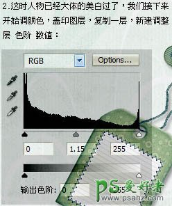 2、这时人物已经大体的美白过了,我们接下来开始调颜色,新建一个图层按Ctrl + Alt + Shift + E 盖印图层,复制一层,创建色阶调整图层,参数设置如下图。