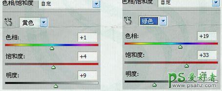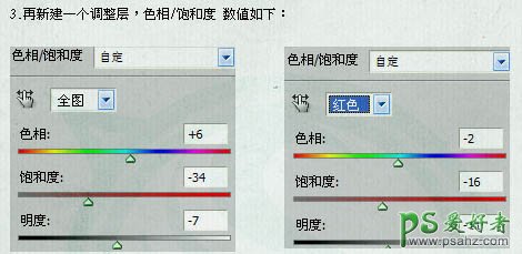 3、创建色相/饱和度调整图层,对个通道进行调整,参数设置如下图。