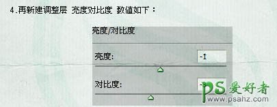 4、创建亮度/对比度调整图层,参数设置如下图。