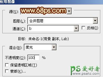 9、新建一个图层,按Ctrl + Alt + Shift + E 盖印图层。选择菜单:图像 > 模式 > LAb颜色,在弹出的对话框选择不合拼。 执行:图像 > 应用图像,参数设置如图20,效果如图21。