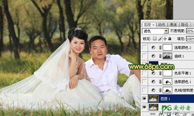 1、打开原图素材,按Ctrl + J 把背景图层复制一层,图层混合模式改为“滤色”,不透明度改为:20%,稍微把图层加亮一点,效果如下图。