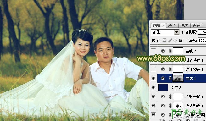 6、按Ctrl + Alt + ~ 调出高光选区,按Ctrl + Shift + I 把选区反选,然后创建曲线调整图层,对红色进行调整,参数设置如图13,确定后把图层不透明度改为:30%,效果如图14。