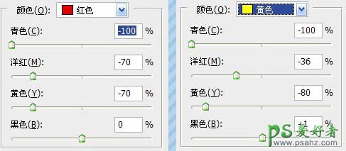 4、建立可选颜色调整层,分别调整红色,黄色,绿色,蓝色,中性色,黑色,白色进行调整,参数如图: