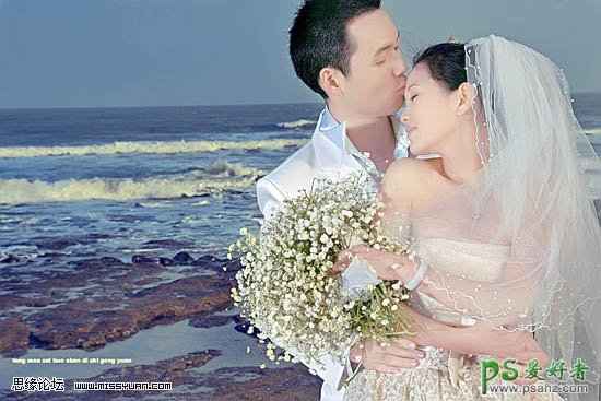 photoshop调出淡蓝艺术效果海景婚纱照