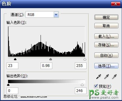 4、我们来把周围的颜色压暗一些,建立色阶调整层,参数及效果如下图: