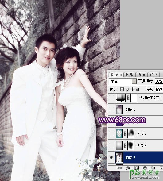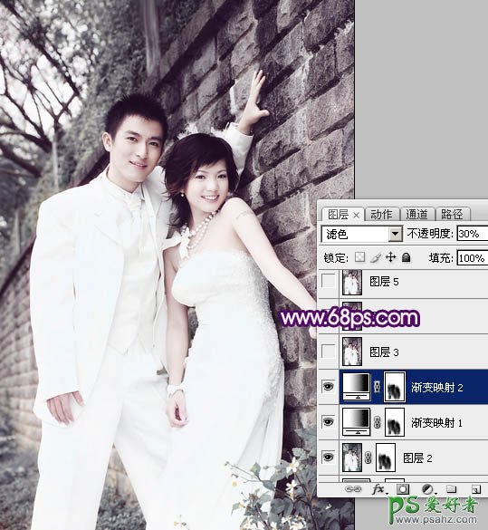 photoshop调出古典风格时尚情侣婚纱艺术照
