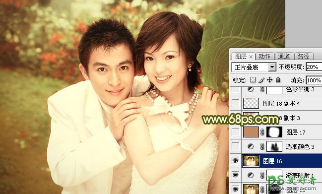 17、新建一个图层,盖印图层。图层混合模式改为“正片叠底”,不透明度改为:20%,效果如下图。