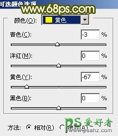 2、创建可选颜色调整图层,对黄色进行调整,参数设置如图4,效果如图5。