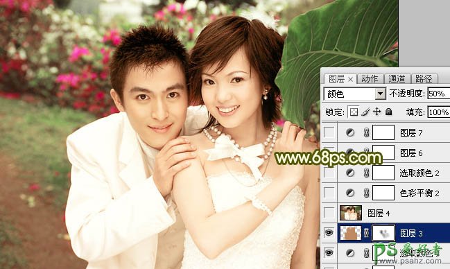 3、新建一个图层,填充颜色:#BF8A62,图层混合模式改为“颜色”,不透明度改为:50%,加上图层蒙版,只保留人物部分,其它部分用黑色画笔擦掉。