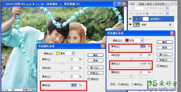 2、创建可选颜色调整图层,处理人物肤色,使之呈现暖橙色,参数设置如下图。