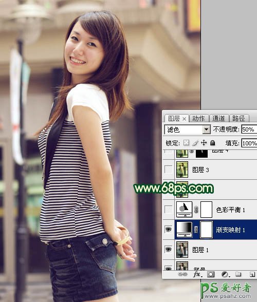 1、打开原图素材,创建渐变映射调整图层,颜色设置如图1,确定后把图层混合模式改为“滤色”,不透明度改为:50%,效果如图2。