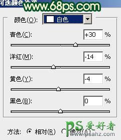 7、创建可选颜色调整图层,对红,黄,白,中性色进行调整,参数设置如图17 - 20,效果如图21。