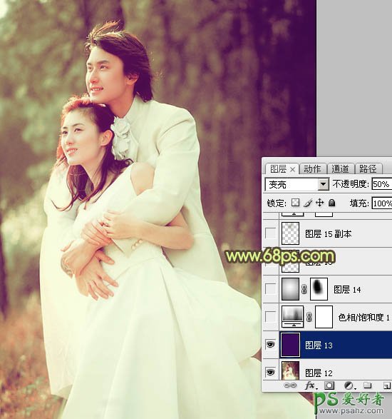 9、新建一个图层,填充颜色:#390B5F,图层混合模式改为“变亮”,不透明度改为:50%,效果如下图。