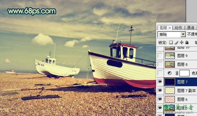 13、新建一个图层,填充颜色:#0C0648,图层混合模式改为“排除”,效果如下图。