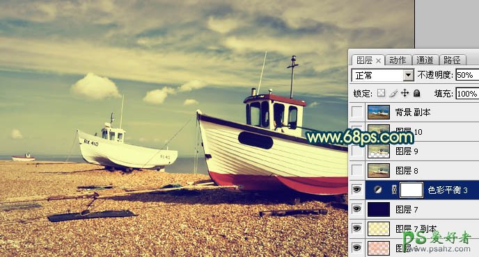 PS照片后期调色教程,photoshop调出怀旧老照片效果海滩风景照,黄褐色及暗褐色都能给人一种怀旧的感觉。这种色系的图片调色方法也比较简单。大致过程:先用调色工具把图片暗调部分的颜色调成青蓝色,然后把高光部分填充橙黄色,再适当改变图层混合