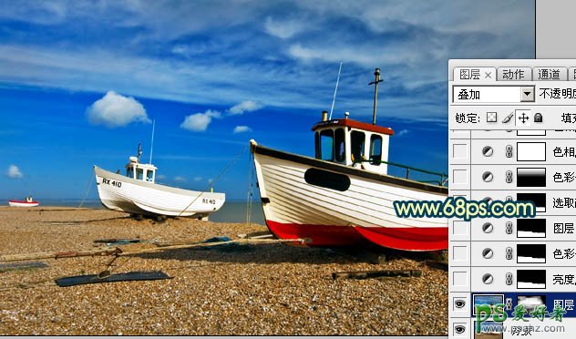 1、打开原图素材,按Ctrl + J 把背景图层复制一层,图层混合模式改为“叠加”,加上图层蒙版,用黑色画笔把不需要加强的部分擦出来,效果如下图。