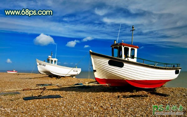 PS照片后期调色教程,photoshop调出怀旧老照片效果海滩风景照,黄褐色及暗褐色都能给人一种怀旧的感觉。这种色系的图片调色方法也比较简单。大致过程:先用调色工具把图片暗调部分的颜色调成青蓝色,然后把高光部分填充橙黄色,再适当改变图层混合