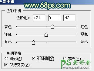 3、调出当前图层蒙版选区既沙滩部分的选区,然后创建色彩平衡调整图层,对中间调及高光进行调整,参数设置如图5,6,效果如图7。