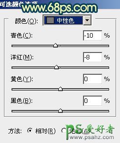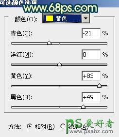 4、调出当前图层蒙版选区既沙滩部分的选区,创建可选颜色调整图层,对黄,中性色进行调整,参数设置如图8,9,效果如图10。