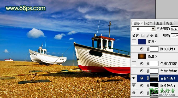 PS照片后期调色教程,photoshop调出怀旧老照片效果海滩风景照,黄褐色及暗褐色都能给人一种怀旧的感觉。这种色系的图片调色方法也比较简单。大致过程:先用调色工具把图片暗调部分的颜色调成青蓝色,然后把高光部分填充橙黄色,再适当改变图层混合