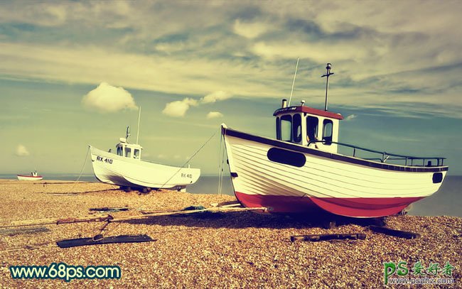 PS照片后期调色教程,photoshop调出怀旧老照片效果海滩风景照,黄褐色及暗褐色都能给人一种怀旧的感觉。这种色系的图片调色方法也比较简单。大致过程:先用调色工具把图片暗调部分的颜色调成青蓝色,然后把高光部分填充橙黄色,再适当改变图层混合模式。即可作出有怀旧感觉的图片。
