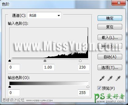 9、建立色阶调整层,参数如下,操作完毕记得在人物部分用低透明度的画笔稍微的在图层蒙版擦一下。